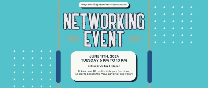 Join the Mays Landing Merchants Association on June 11 at Freddy J’s for networking and charity. Tickets $15, profits to local food pantry.