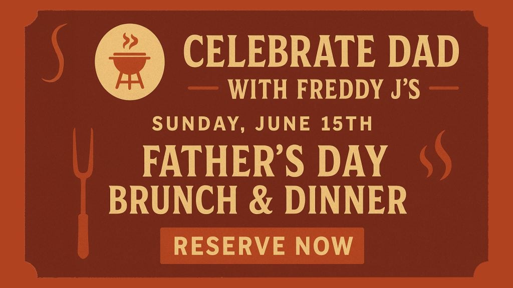 Father’s Day is a big deal at Freddy J’s Bar & Kitchen. The restaurant bears my dad’s name, Freddy J, only because he reluctantly agreed; however, his passion for smoking meats and experimenting with flavors is the backbone of our menu.